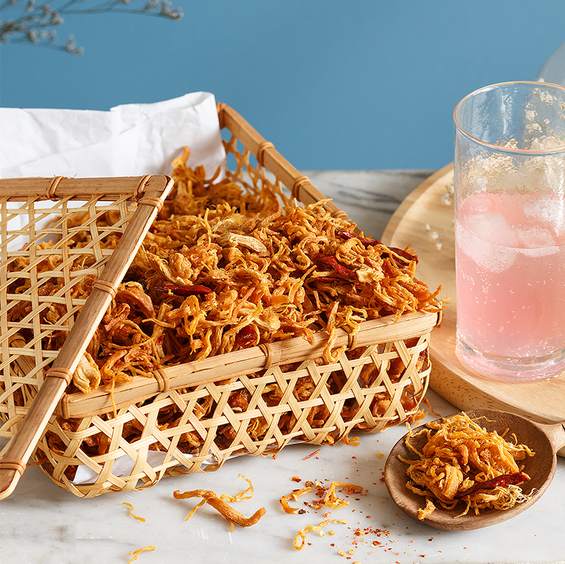 Từng sợi thịt khô vẫn lưu được vị ngọt tự nhiên của thịt gà tươi, lẫn trong đó là tỏi thái lát và ớt trái phơi khô tạo nên màu sắc hài hòa cho món ăn vặt ngỡ quen mà lạ. Những khách hàng từng nếm qua KHÔ GÀ SA TẾ TỎI đều cho nhận xét tích cực và cho biết sẽ tiếp tục mua dùng cho những lần sau.